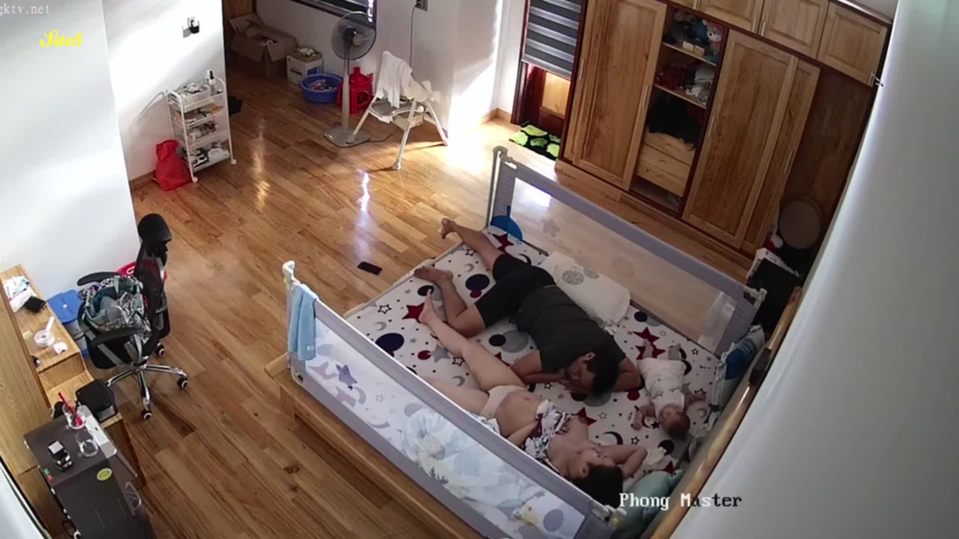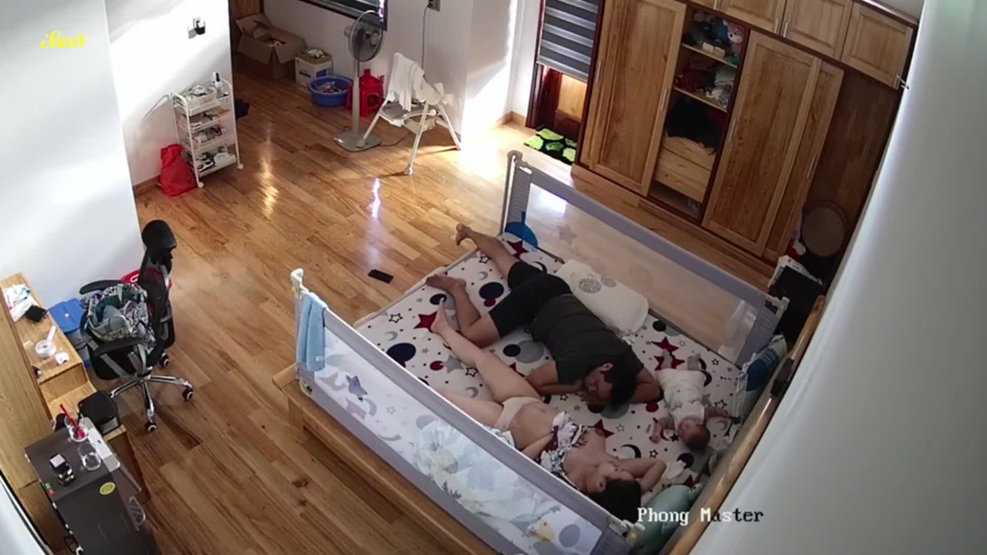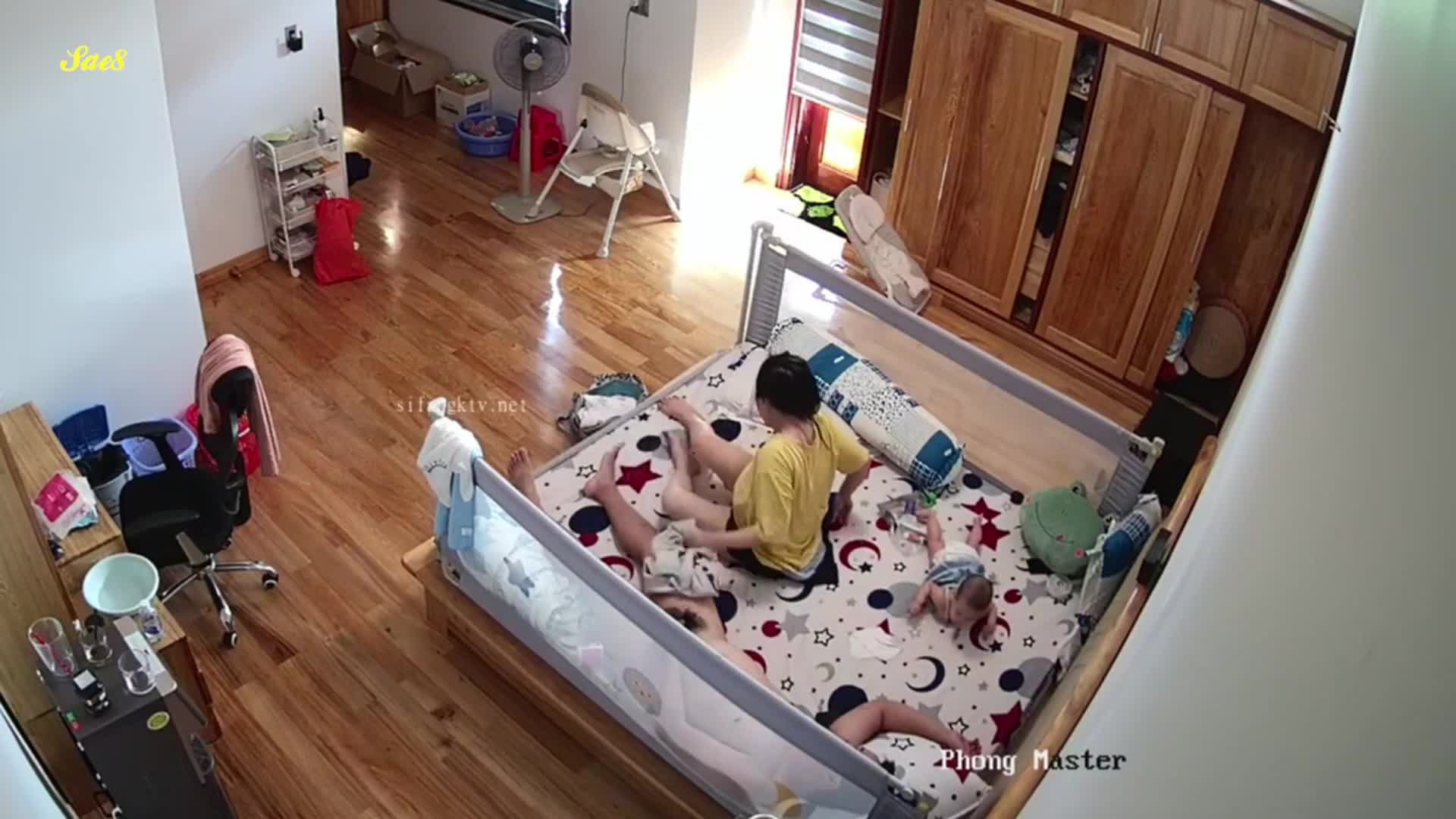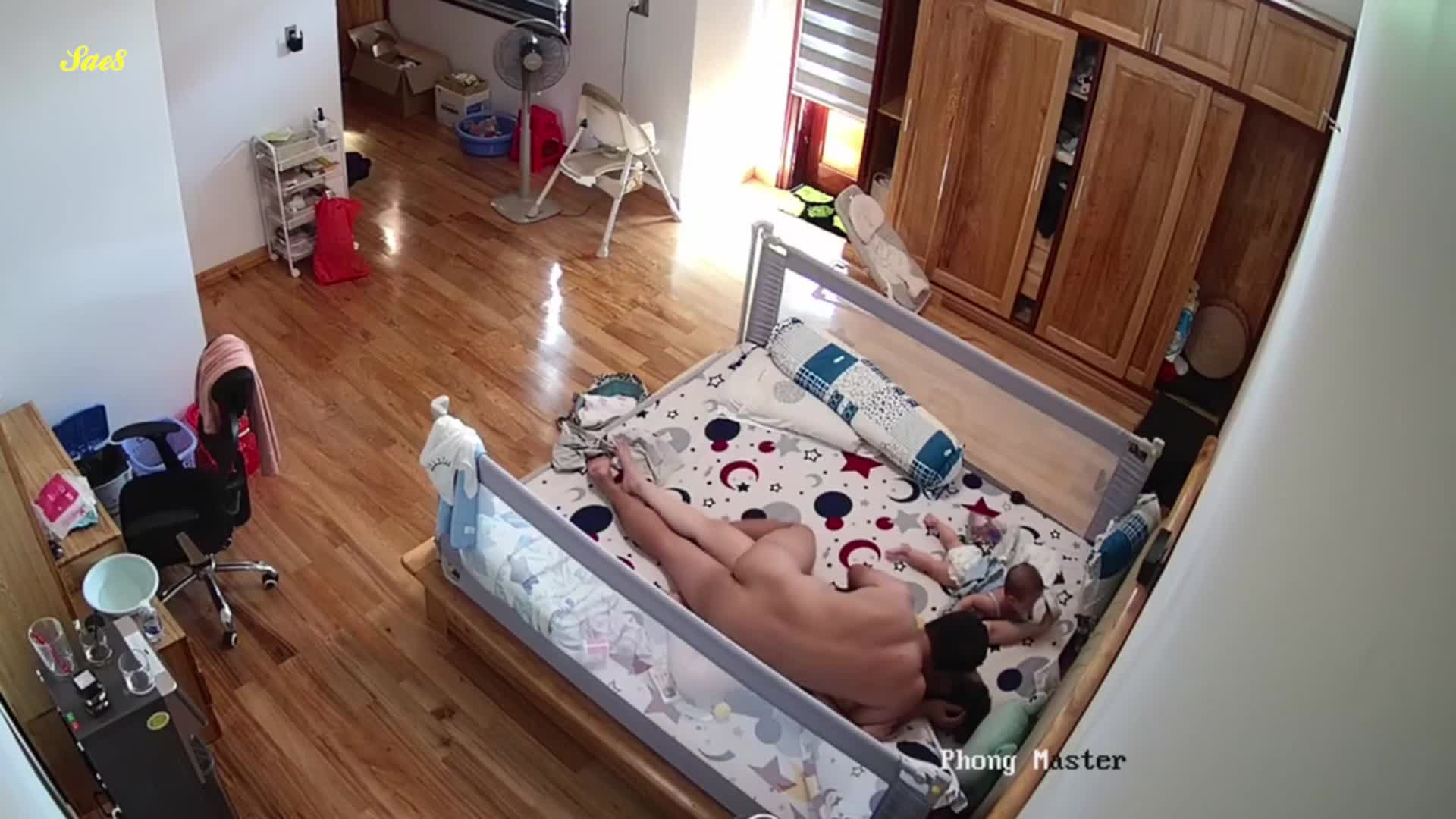 黑客破解摄像头偷拍老公下班回来看见老婆正在喂奶也想上去吃一口。