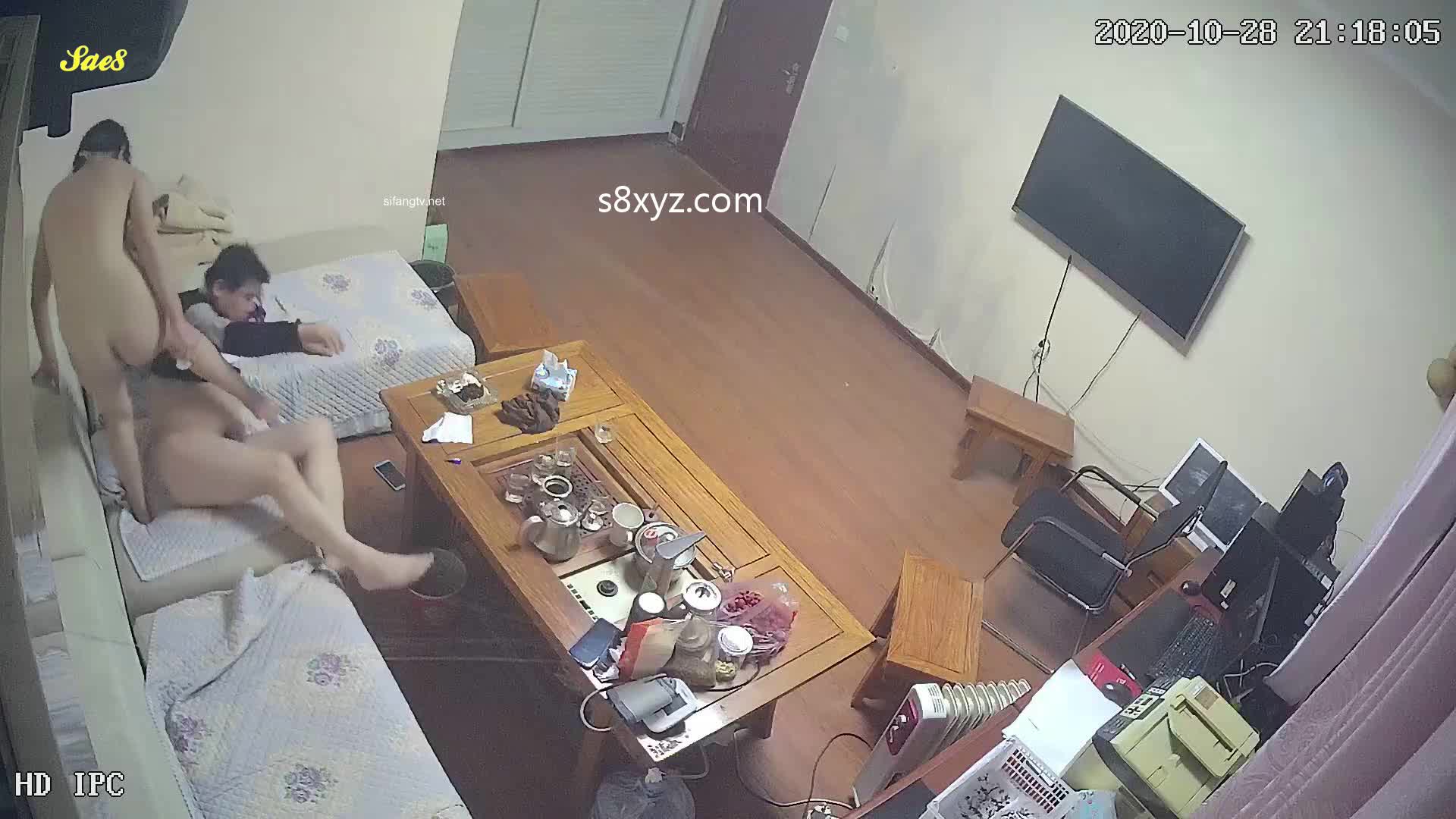 摄像头偷拍老领导打着工作的名号夜访单身女下属沙发半推半就做爱被房东拍下全过程。